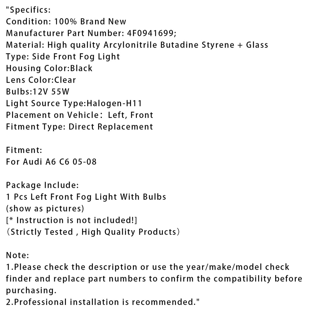 1 Pcs Left Front Bumper Fog Light For Audi A6 C6 2005 2006 2007 2008