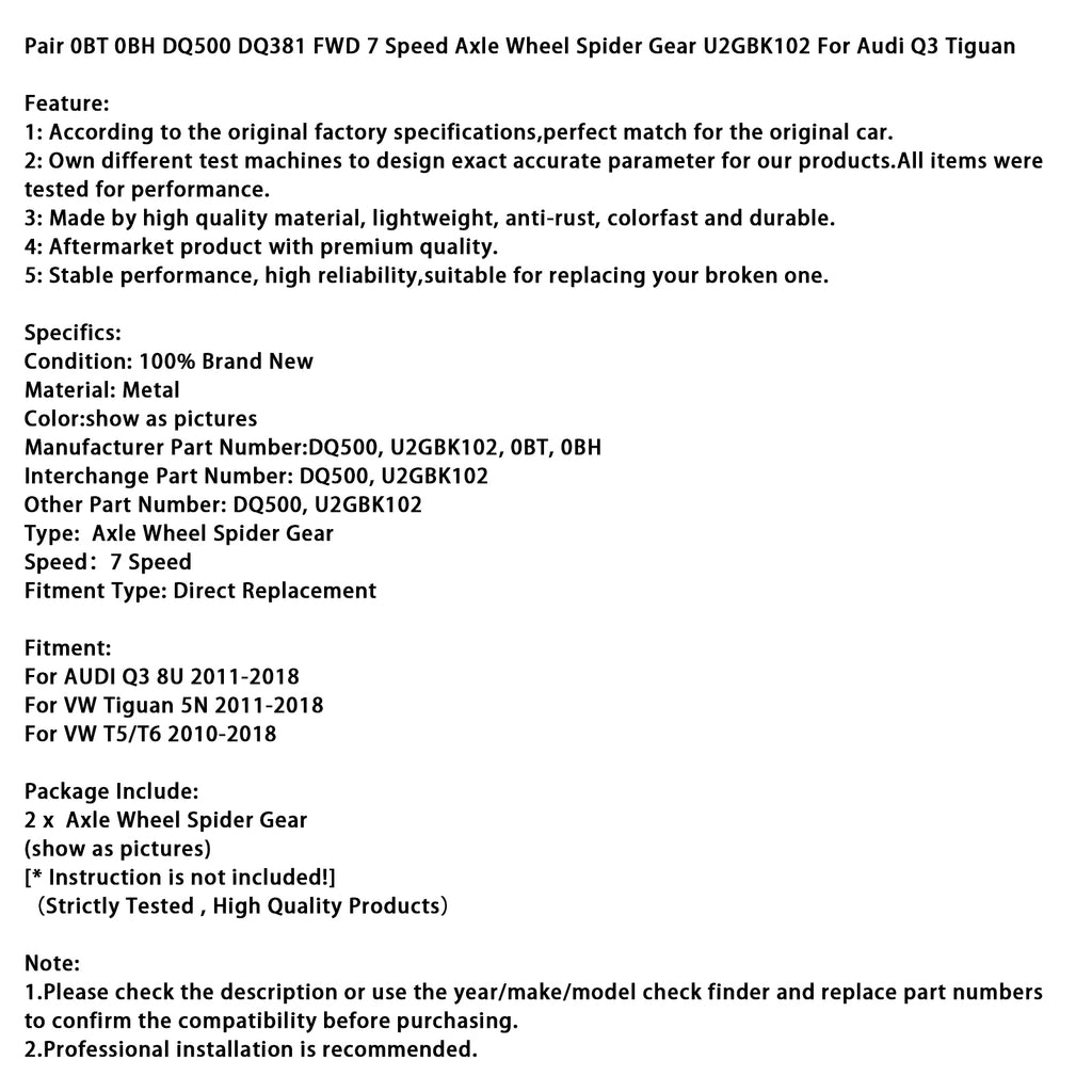 Pair 0BT 0BH DQ500 DQ381 FWD 7 Speed Axle Wheel Spider Gear U2GBK102 For Audi Q3 Tiguan