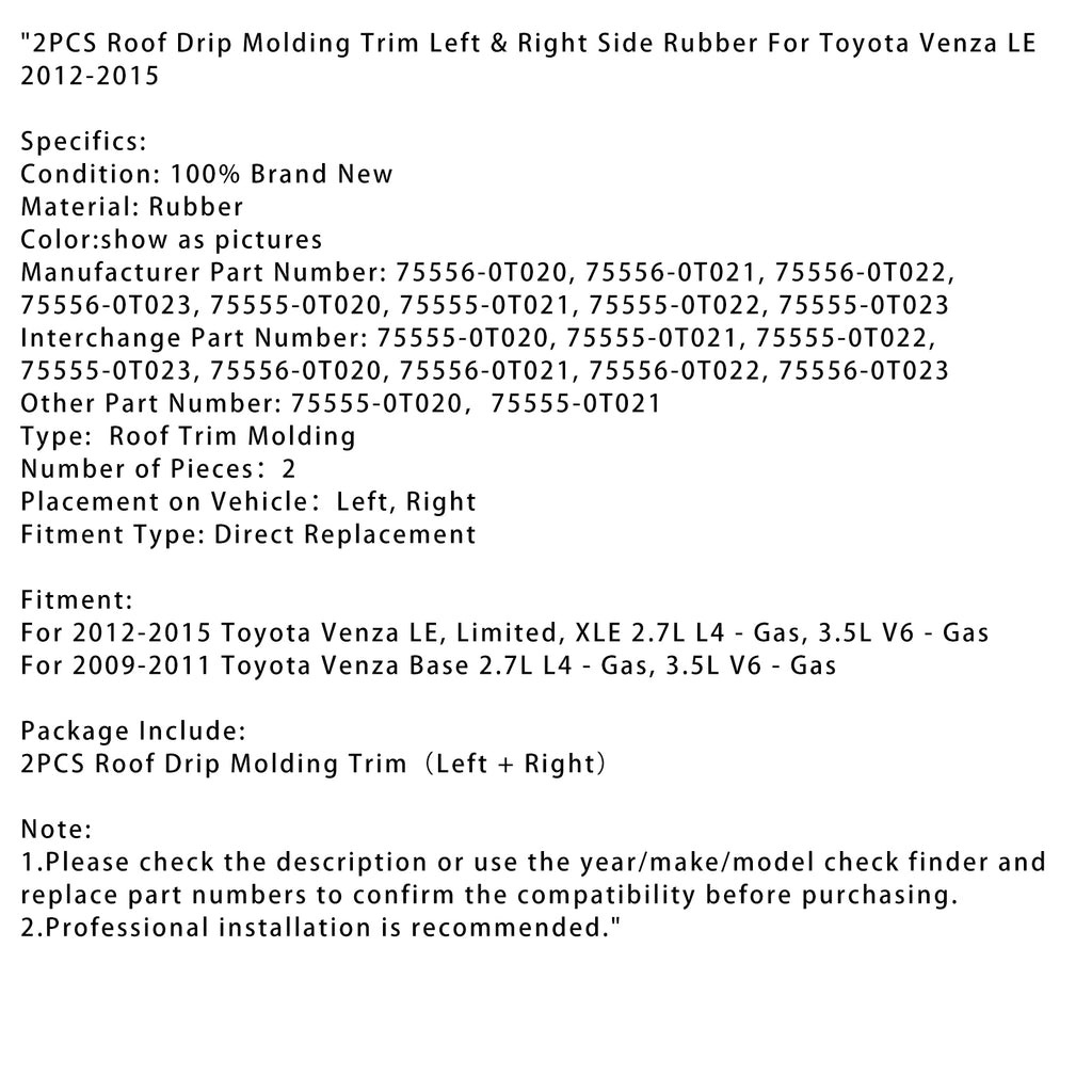 2PCS Roof Drip Molding Trim Left & Right Side Rubber For Toyota Venza LE 2012-2015
