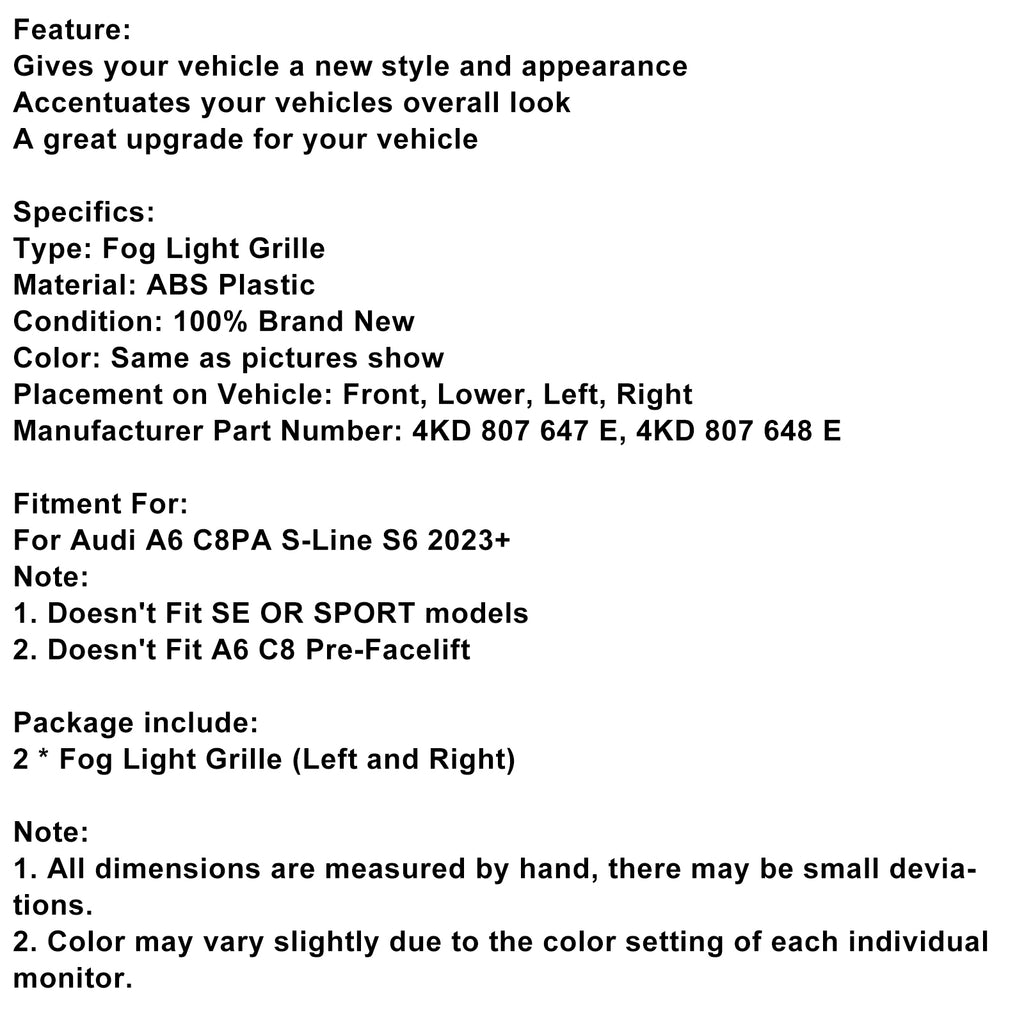 2PCS Front Bumper Fog Light Grille Trim Fit Audi A6L C8PA 2023+ Black Chrome