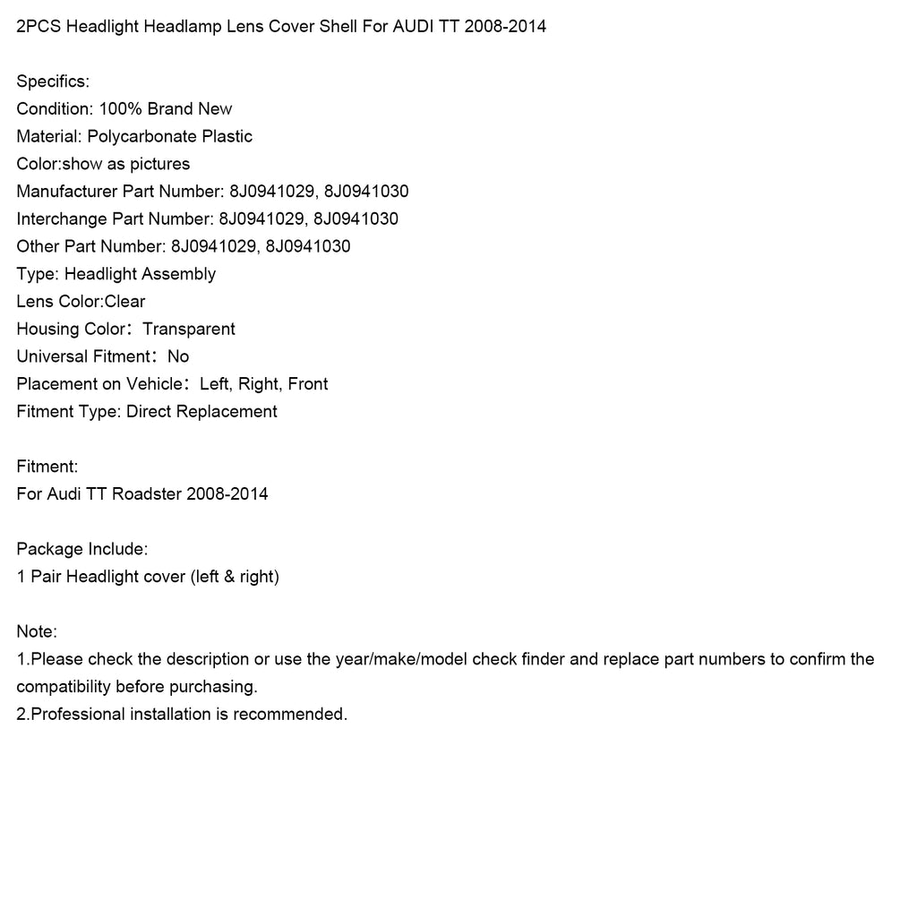 2PCS Headlight Headlamp Lens Cover Shell For AUDI TT 2008-2014