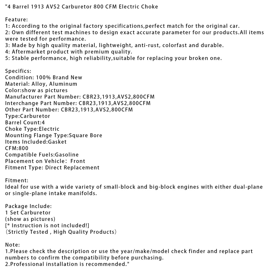 4 Barrel 1913 AVS2 Carburetor 800 CFM Electric Choke CBR23 1913 AVS2 800CFM