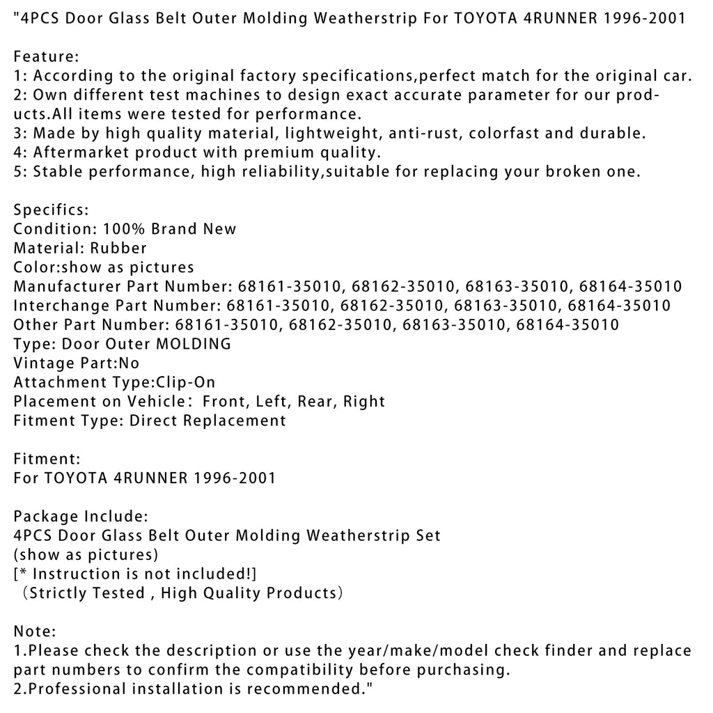 4PCS Door Glass Belt Outer Molding Weatherstrip For TOYOTA 4RUNNER 1996-2001