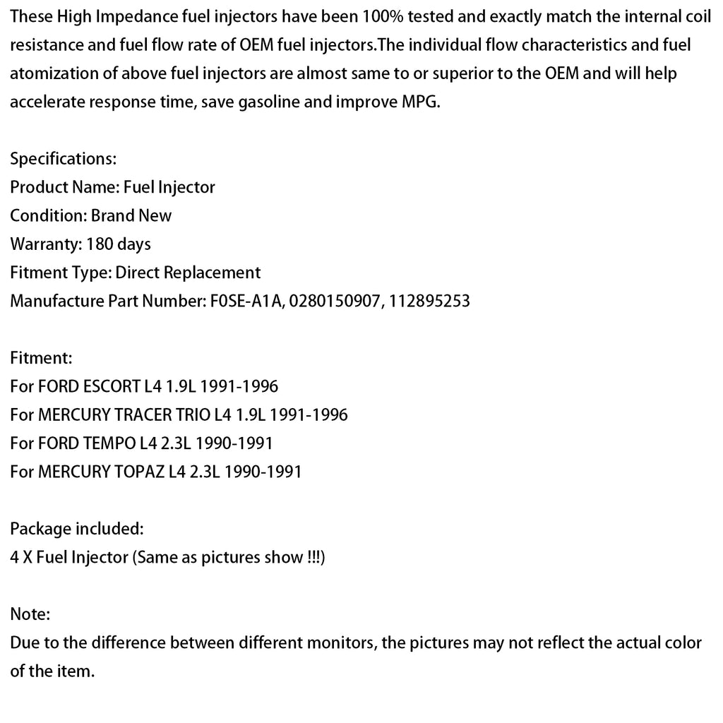 4PCS Fuel Injector 0280150907 Fit Ford Fit Mercury 1.9L 2.3L 1990-1996 F0SE-A1A