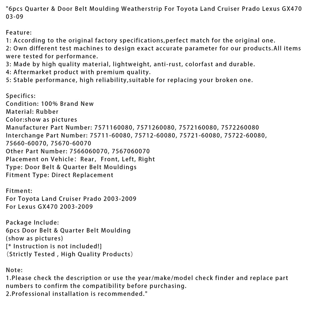 6pcs Quarter & Door Belt Moulding Weatherstrip For Toyota Land Cruiser Prado Lexus GX470 2003-2009