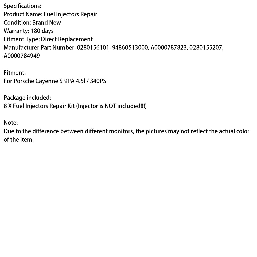 8PCS Fuel Injector Service Kit O-Ring 0280156101 Fit Porsche Cayenne S 4.5L