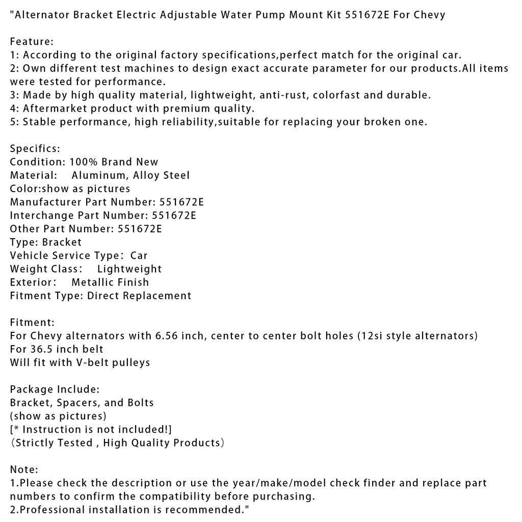 Alternator Bracket Electric Adjustable Water Pump Mount Kit 551672E For Chevy
