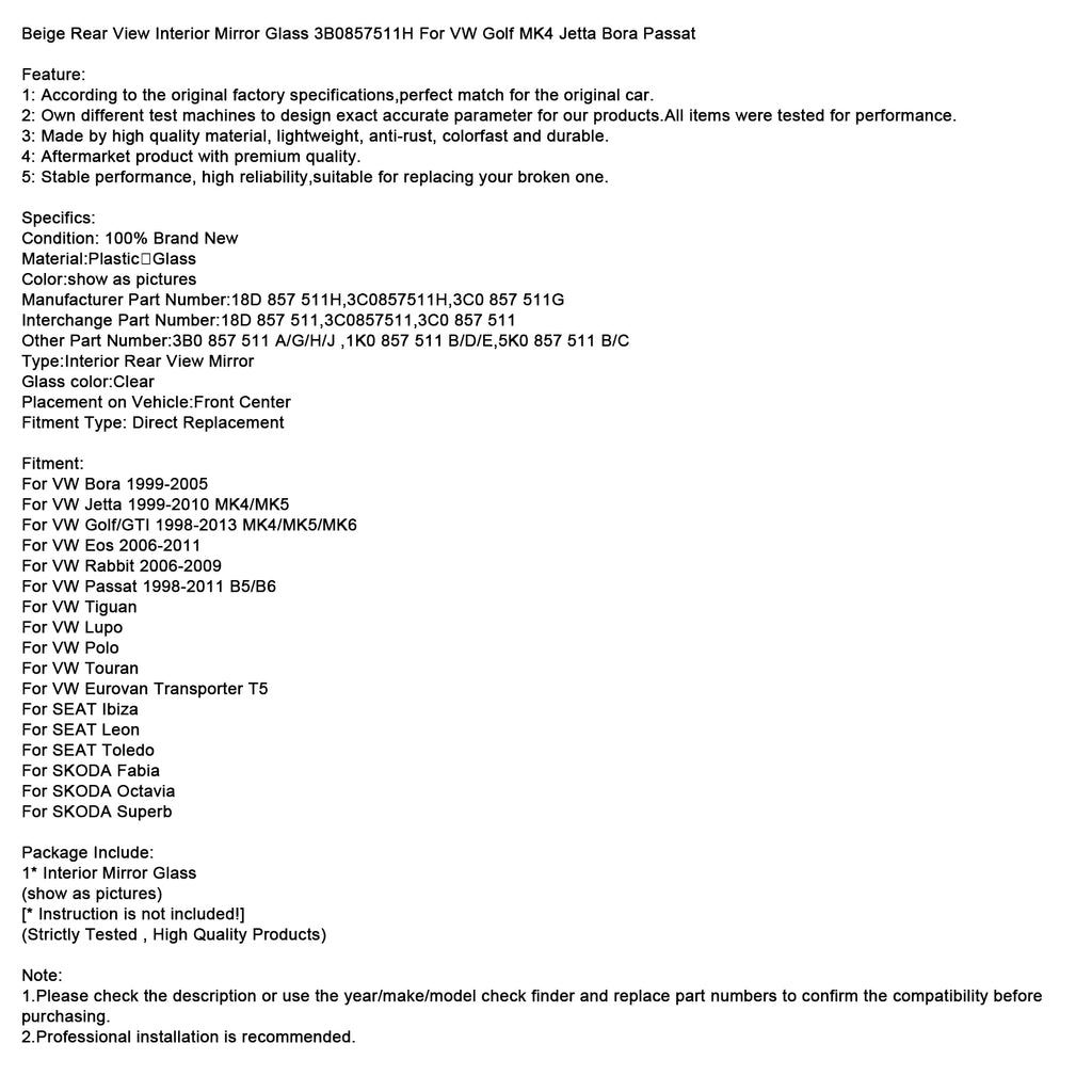 Beige Rear View Interior Mirror Glass 3B0857511H For VW Golf MK4 Jetta Bora Passat