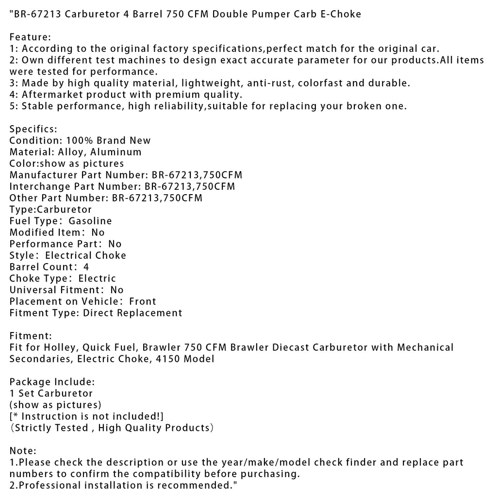 BR-67213 Carburetor 4 Barrel 750 CFM Double Pumper Carb E-Choke