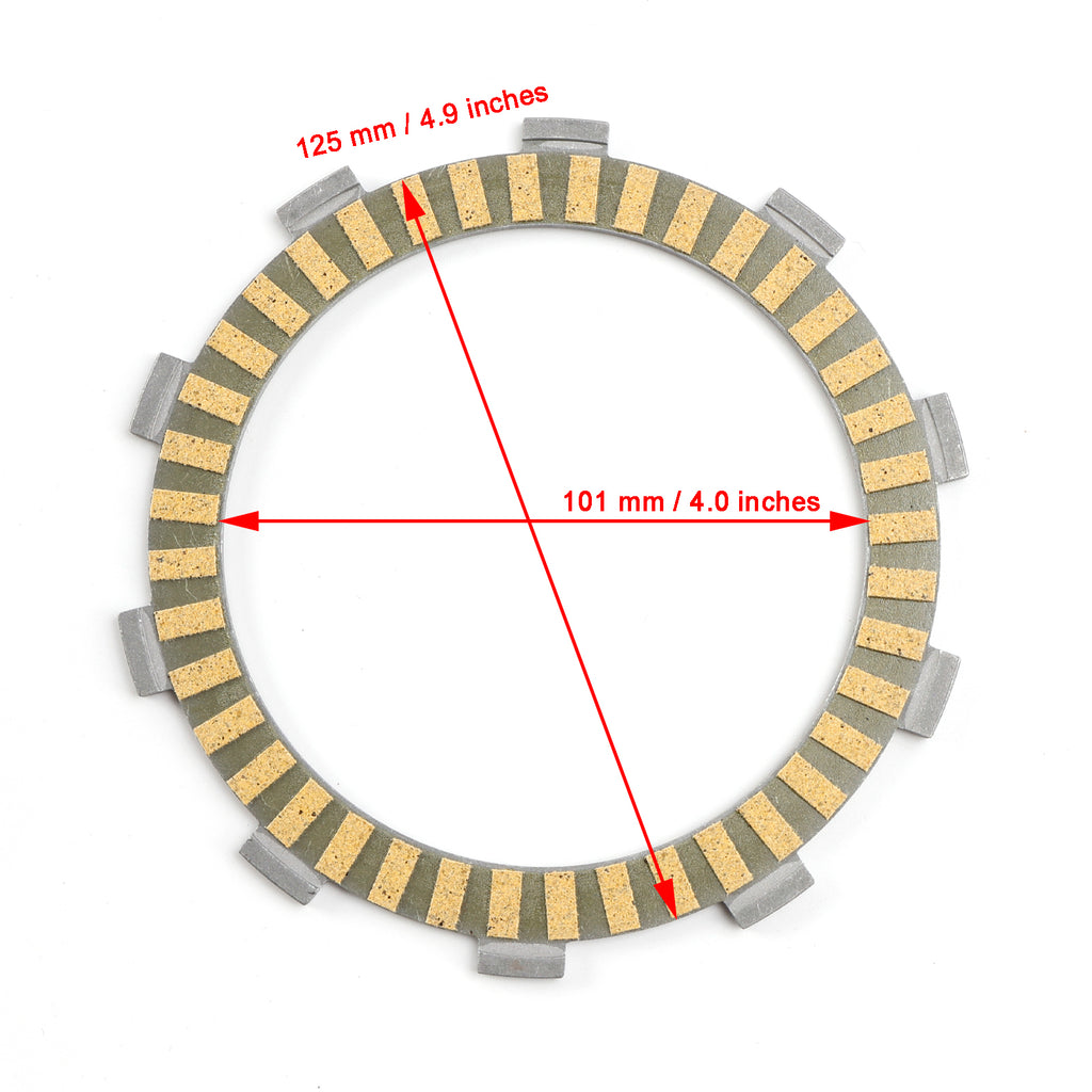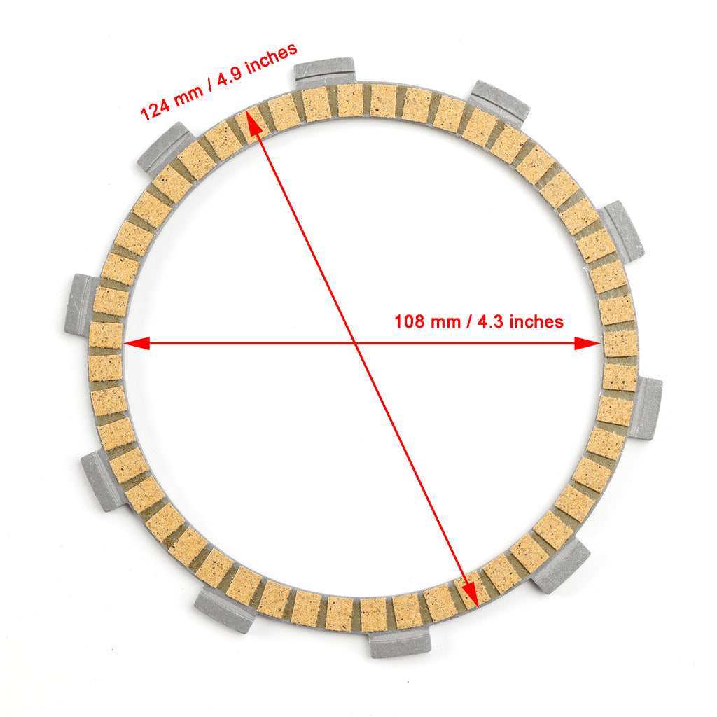 Kit includes 11 friction plates on tempered Iron cores and 10 tempered Iron drive plates.