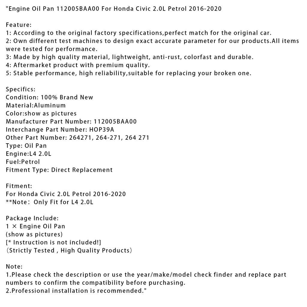 2016-2020 Honda Civic 2.0L Petrol Engine Oil Pan 112005BAA00 HOP39A