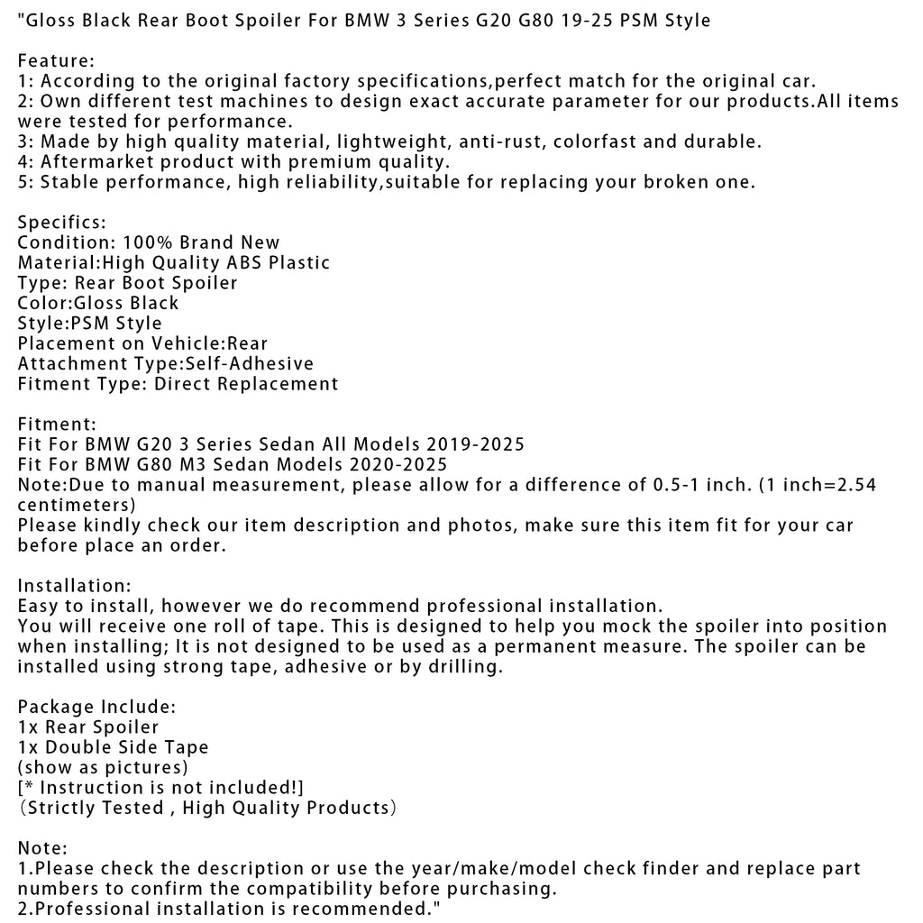 Gloss Black Rear Boot Spoiler For BMW 3 Series G20 G80 19-25 PSM Style