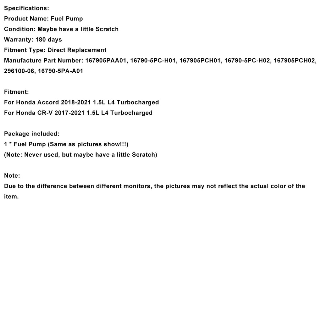 High Pressure Fuel Pump 16790-5PC-H01 Fit Honda Accord CR-V 2017-2021 296100-06