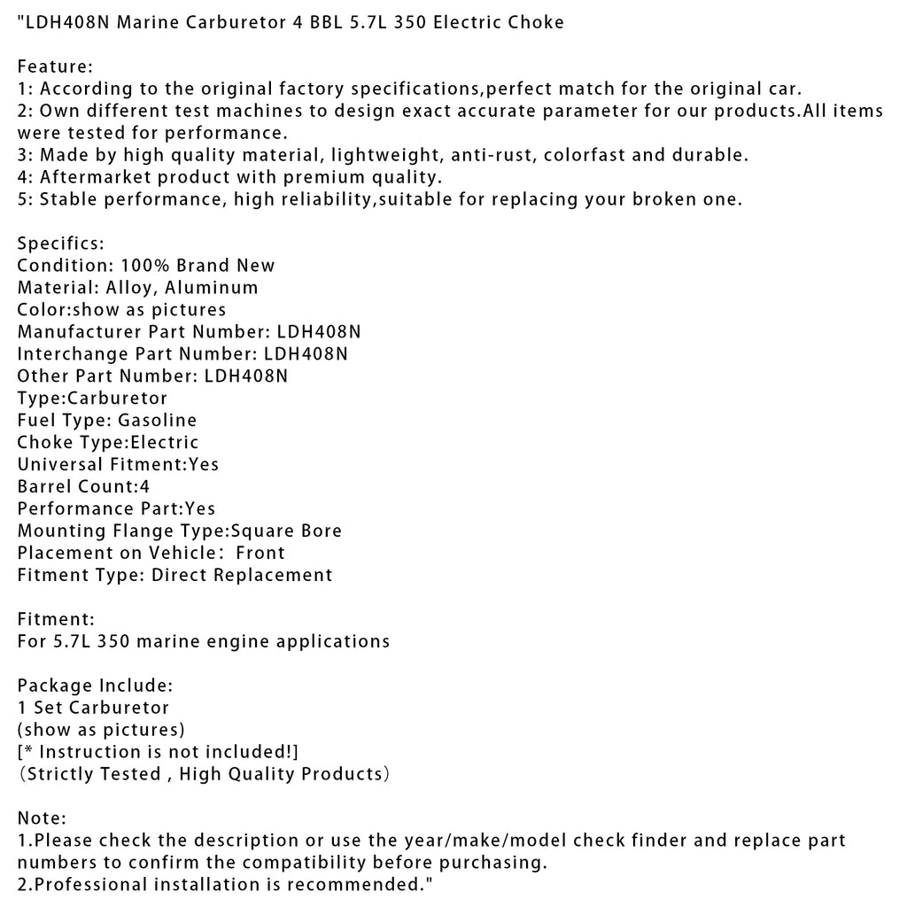 LDH408N Marine Carburetor 4 BBL 5.7L 350 Electric Choke