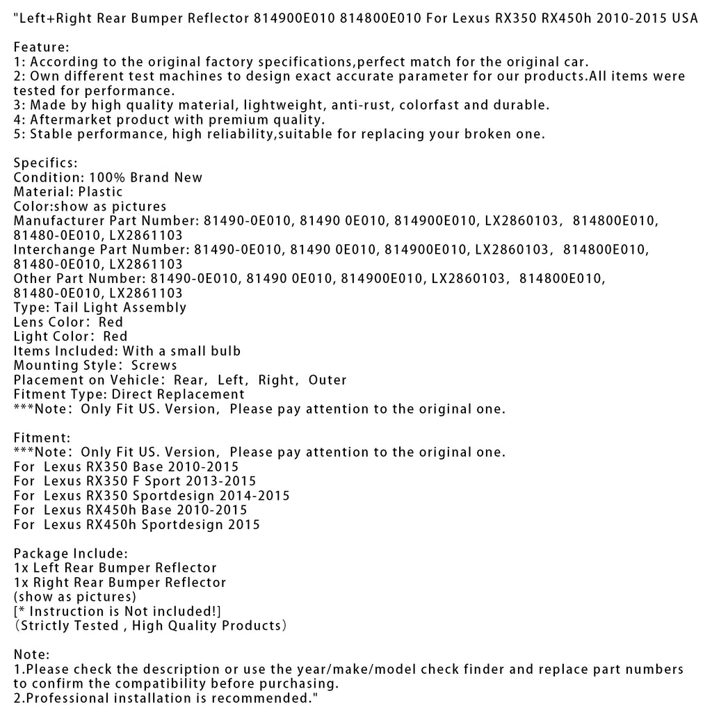 Left+Right Rear Bumper Reflector 814900E010 814800E010 For Lexus RX350 RX450h 2010-2015 USA
