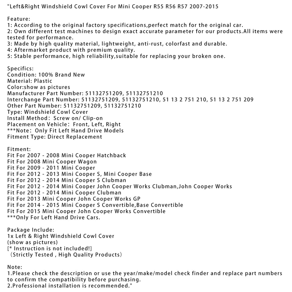 Left&Right Windshield Cowl Cover For Mini Cooper R55 R56 R57 2007-2015