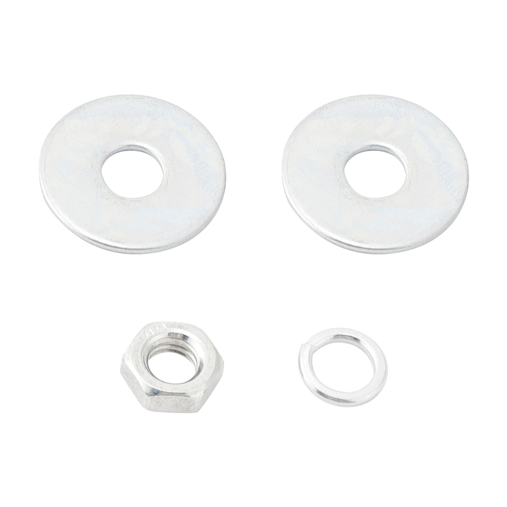 Set of 2 bolts, including washers, nuts and snap rings to make sure they don't roll off.