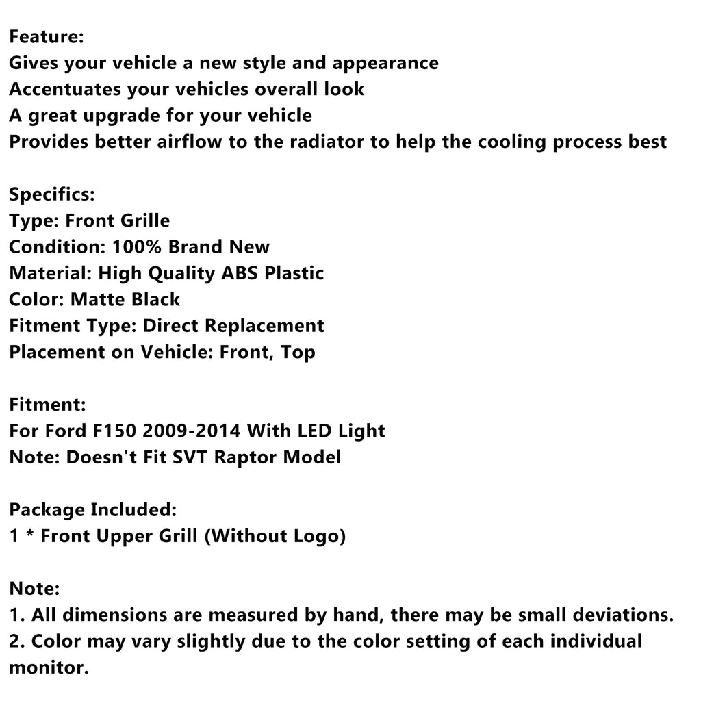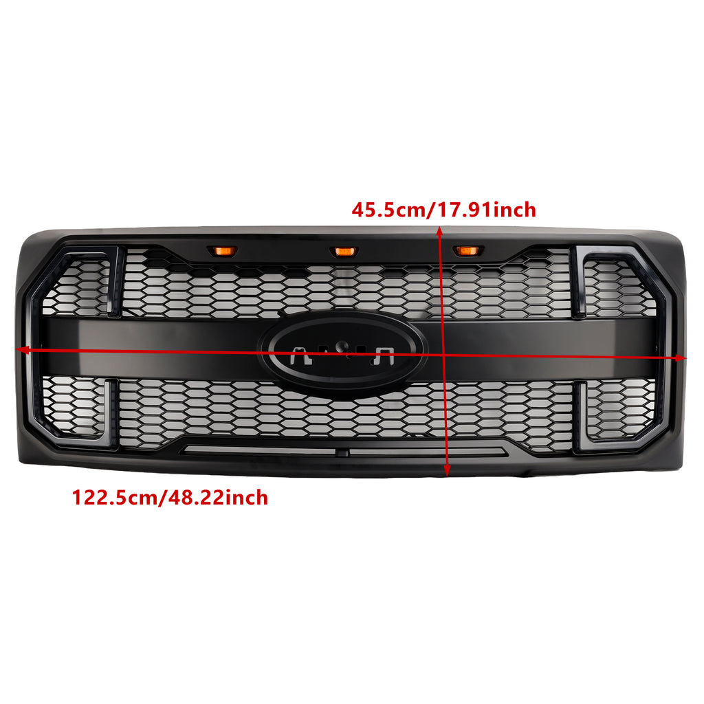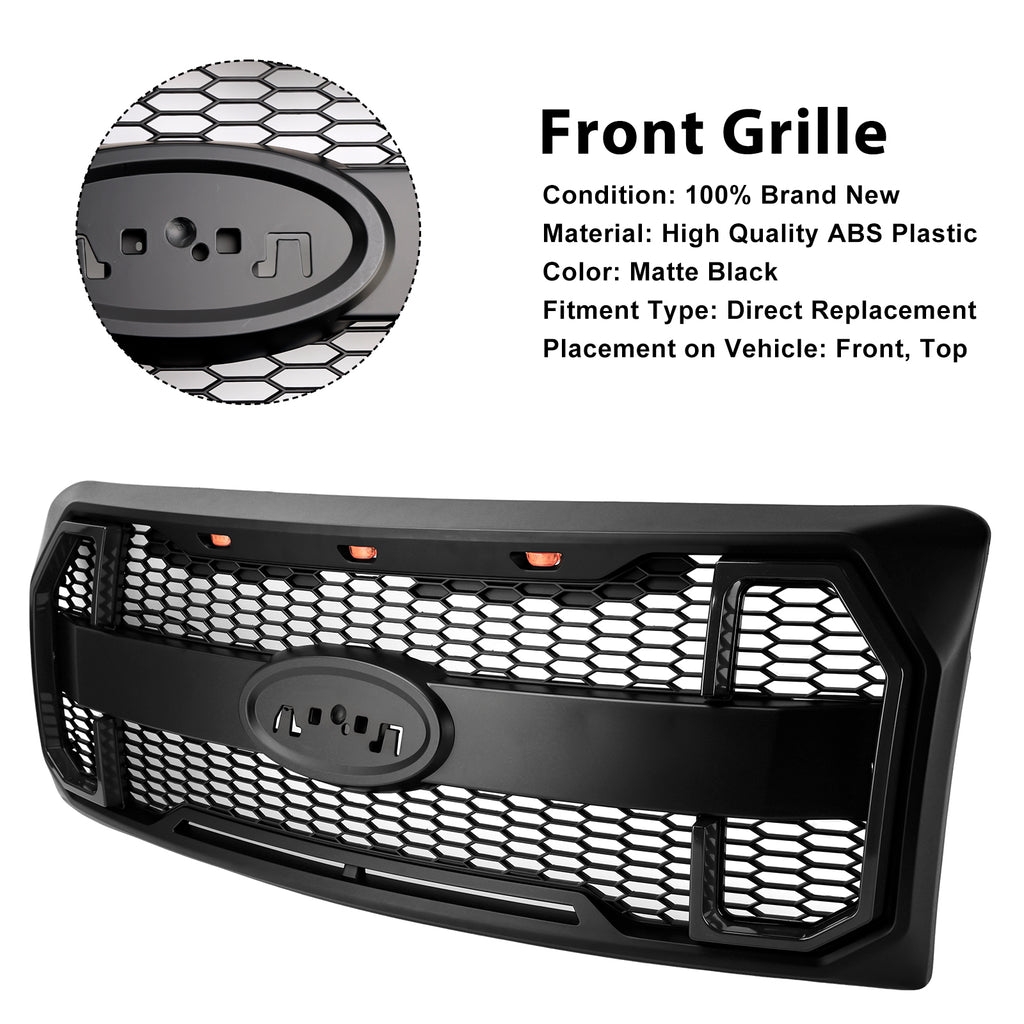 Matte Black Raptor Style Front Bumper Grille Grill Fit Ford F150 2009-2014 W/LED