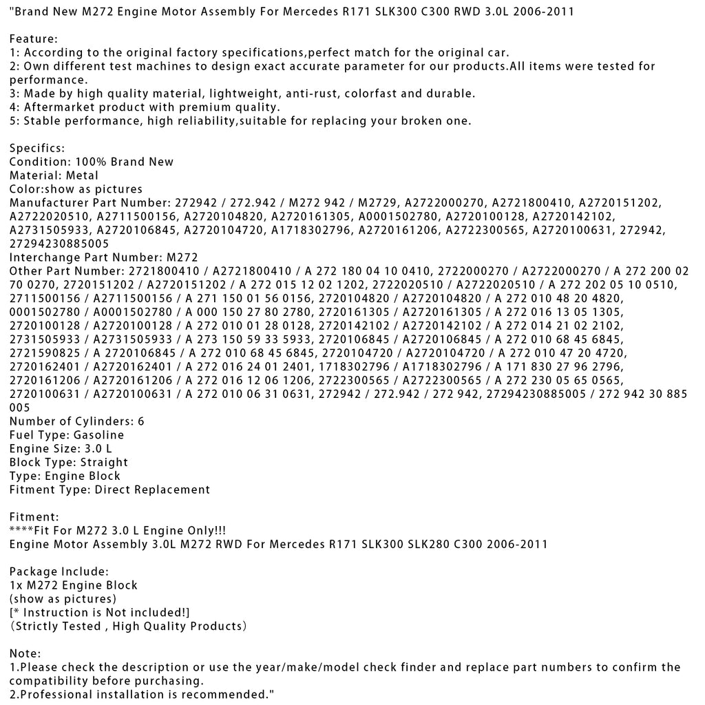Brand New M272 Engine Motor Assembly Fit For Mercedes R171 SLK300 C300 RWD 3.0L 2006-2011