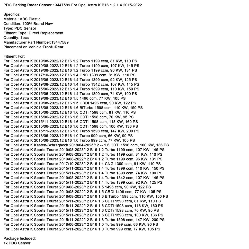 PDC Parking Radar Sensor 13447589 For Opel Astra K B16 1.2 1.4 2015-2022