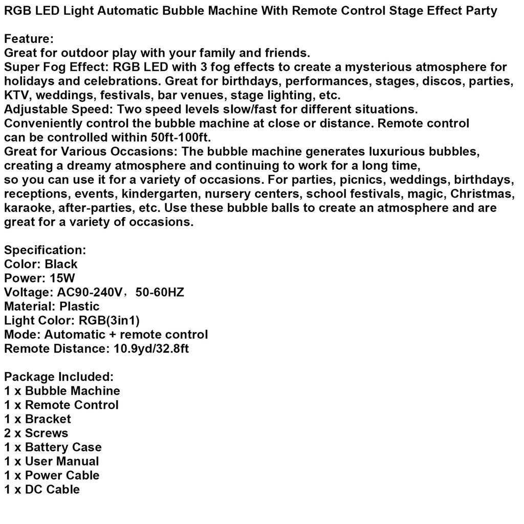 RGB LED Light Automatic Bubble Machine With Remote Control Stage Effect Party