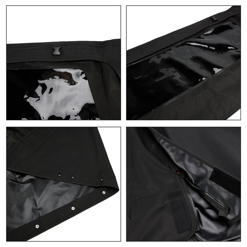 When not in use, the top is stored in the convenient built-in storage system along with the side panels.