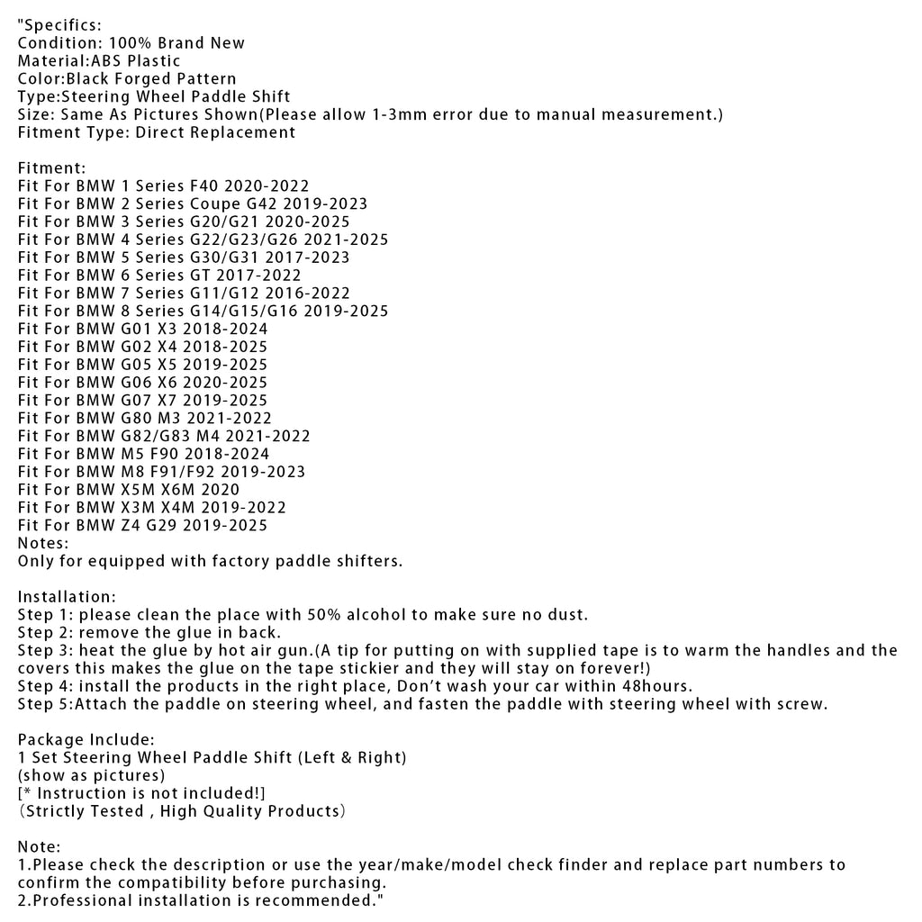 Steering Wheel Paddle Shifter Extensions For BMW G20 G21 G30 G31 F40 F22 F23