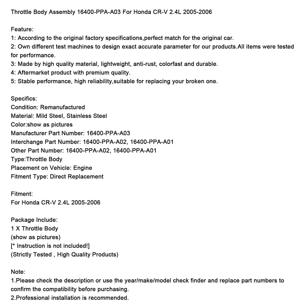 Throttle Body Assembly 16400-PPA-A03 For Honda CR-V 2.4L 2005-2006