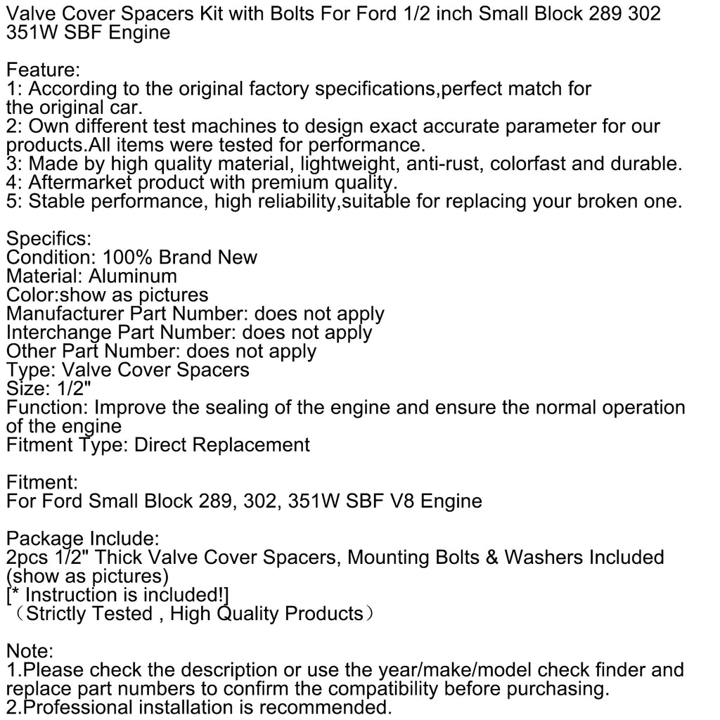 Valve Cover Spacers Kit with Bolts For Ford 1/2 inch Small Block 289 302 351W SBF Engine