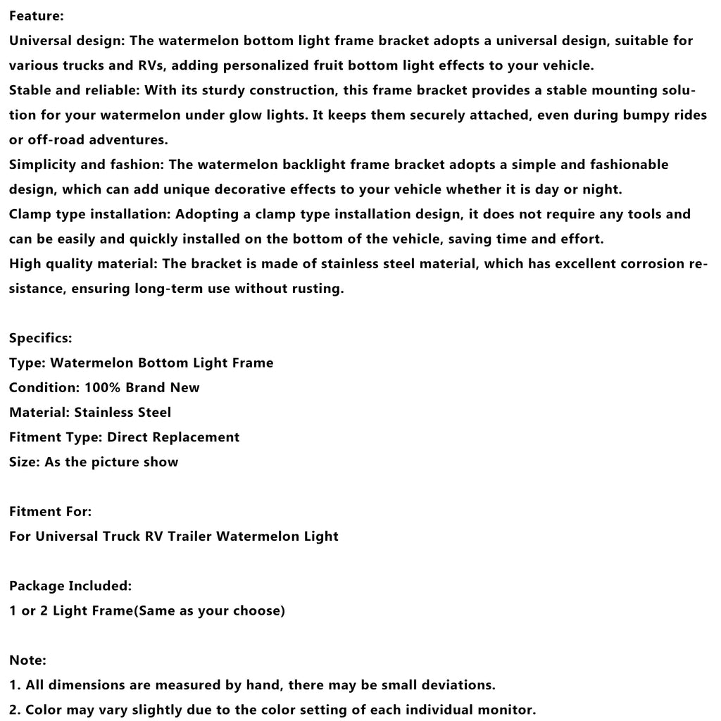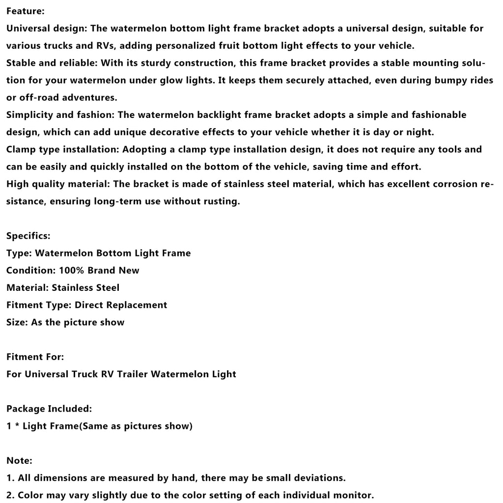 Universal design: The watermelon bottom light frame bracket adopts a universal design, suitable for various trucks and RVs, adding personalized fruit bottom light effects to your vehicle.