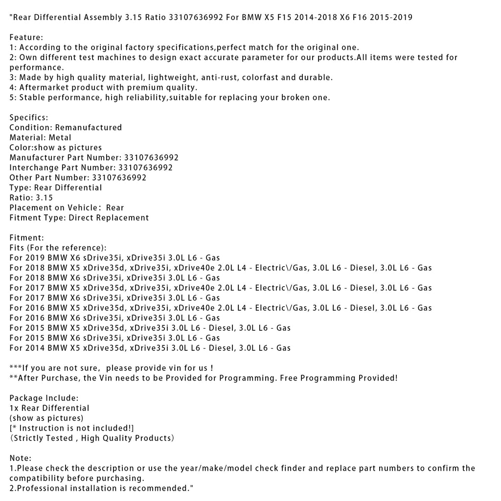 Rear Differential Assembly 3.15 Ratio 33107636992 For BMW X5 F15 2014-2018 X6 F16 2015-2019