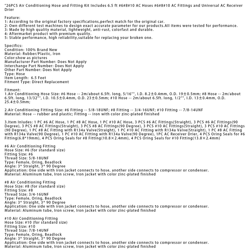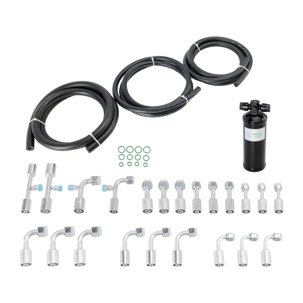 26PCS Air Conditioning Hose and Fitting Kit Includes 6.5 ft #6#8#10 AC Hoses #6#8#10 AC Fittings and Universal AC Receiver Drier