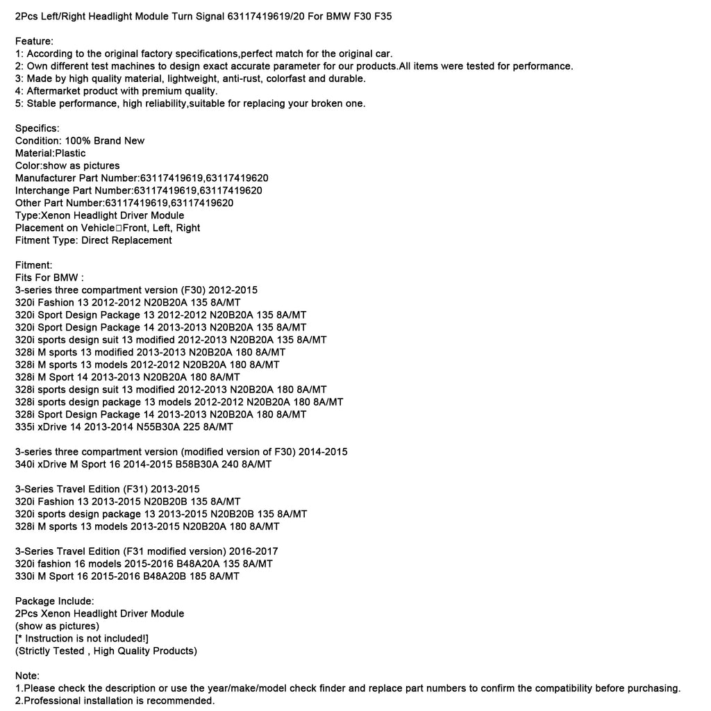 2Pcs Left/Right Headlight Module Turn Signal 63117419619/20 For BMW F30 F35