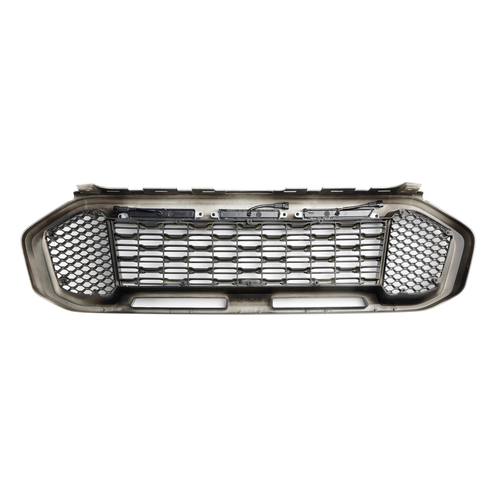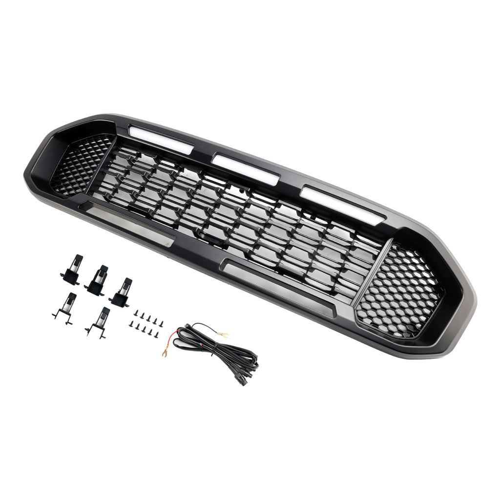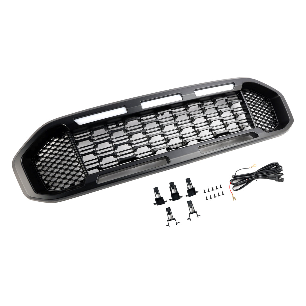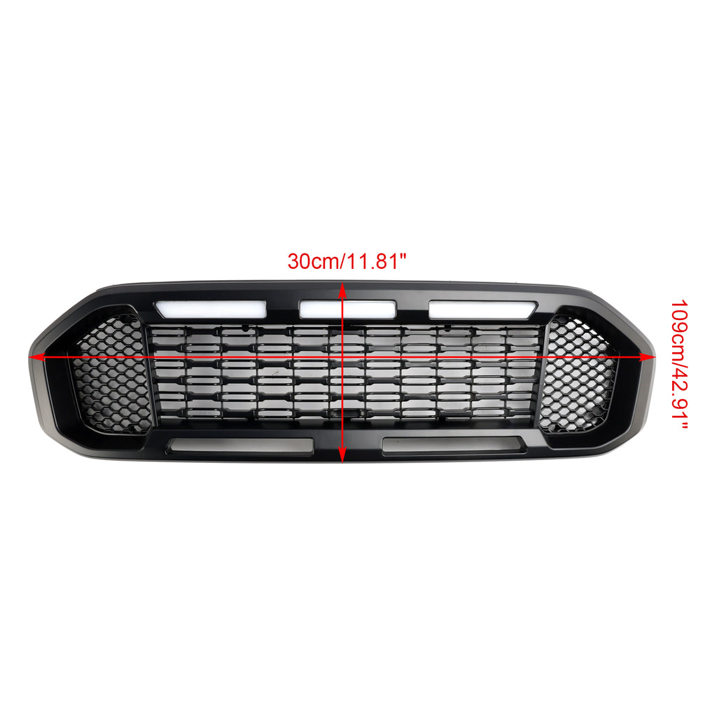 Black Front Bumper Grill Grille Fit Ford Ranger T8 2019-2023 W/LED Light