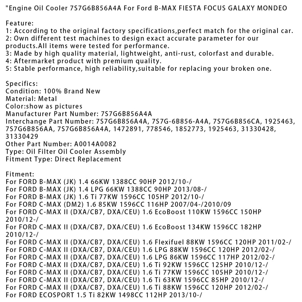 Engine Oil Cooler 7S7G6B856A4A For Ford B-MAX FIESTA FOCUS GALAXY MONDEO