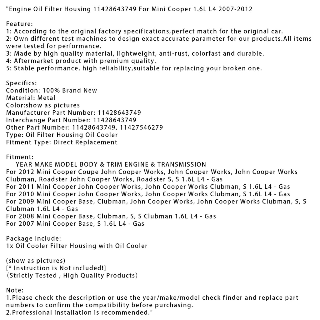 Engine Oil Filter Housing 11428643749 For Mini Cooper 1.6L L4 2007-2012