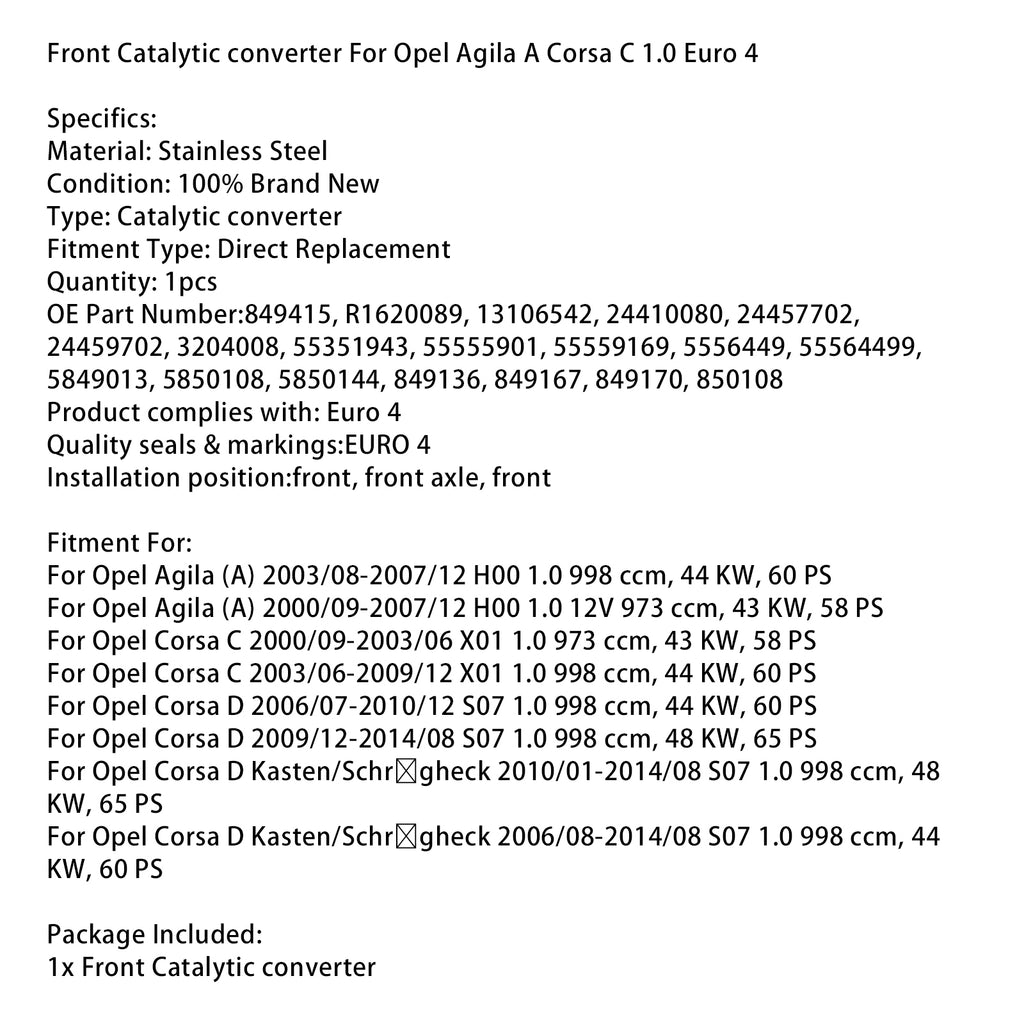 Front Catalytic converter For Opel Agila A Corsa C 1.0 Euro 4