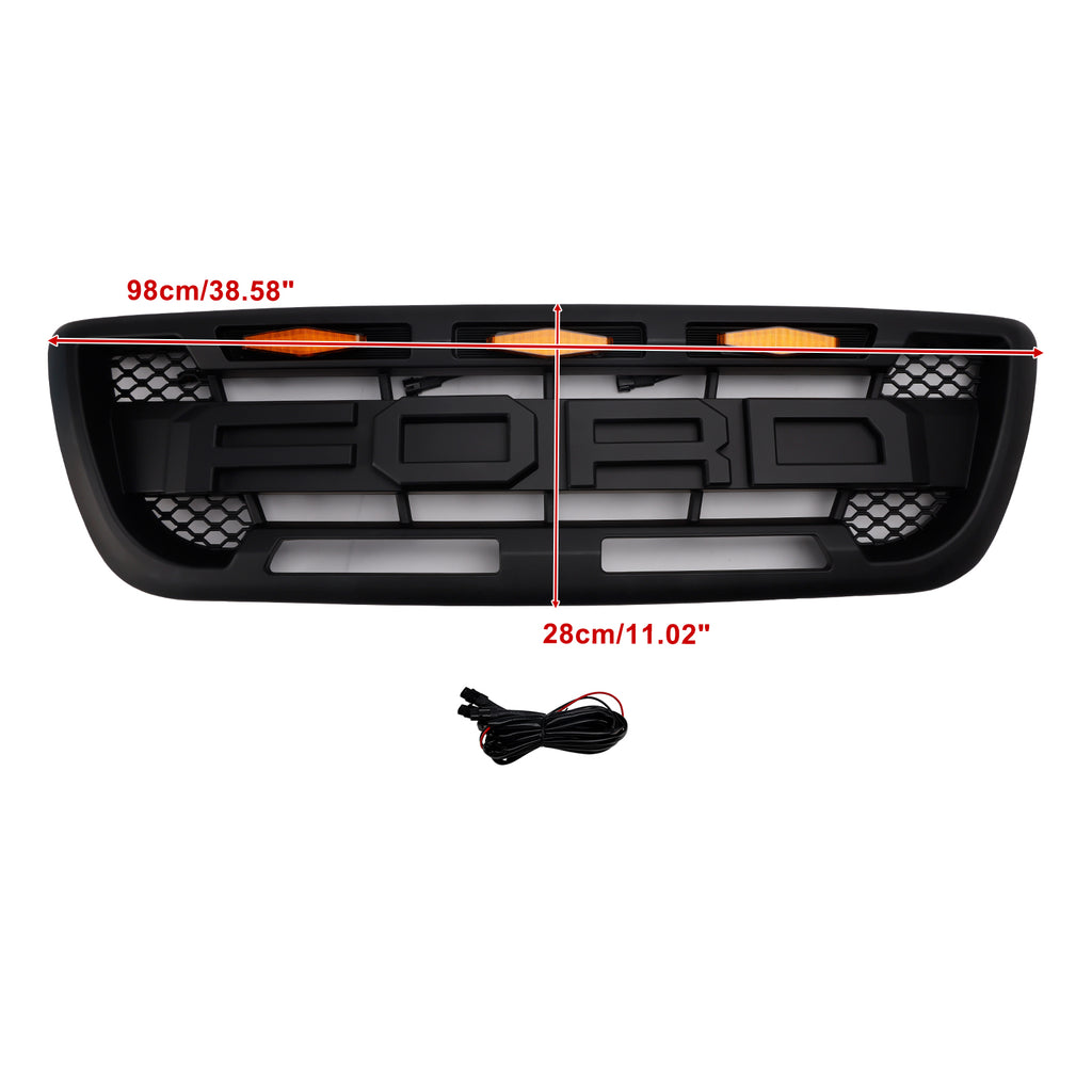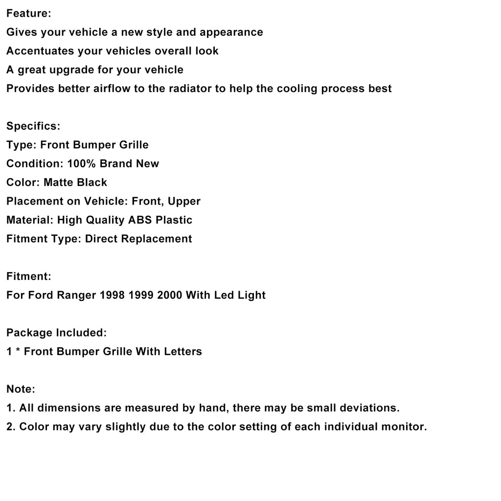 Matt Black Front Bumper Grill Grille Fit for Ford Ranger 1998-2000 With LED Light