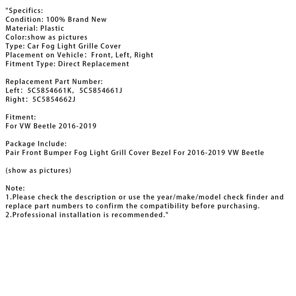 Pair Front Bumper Fog Light Grill Cover Bezel For 2016-2019 VW Beetle