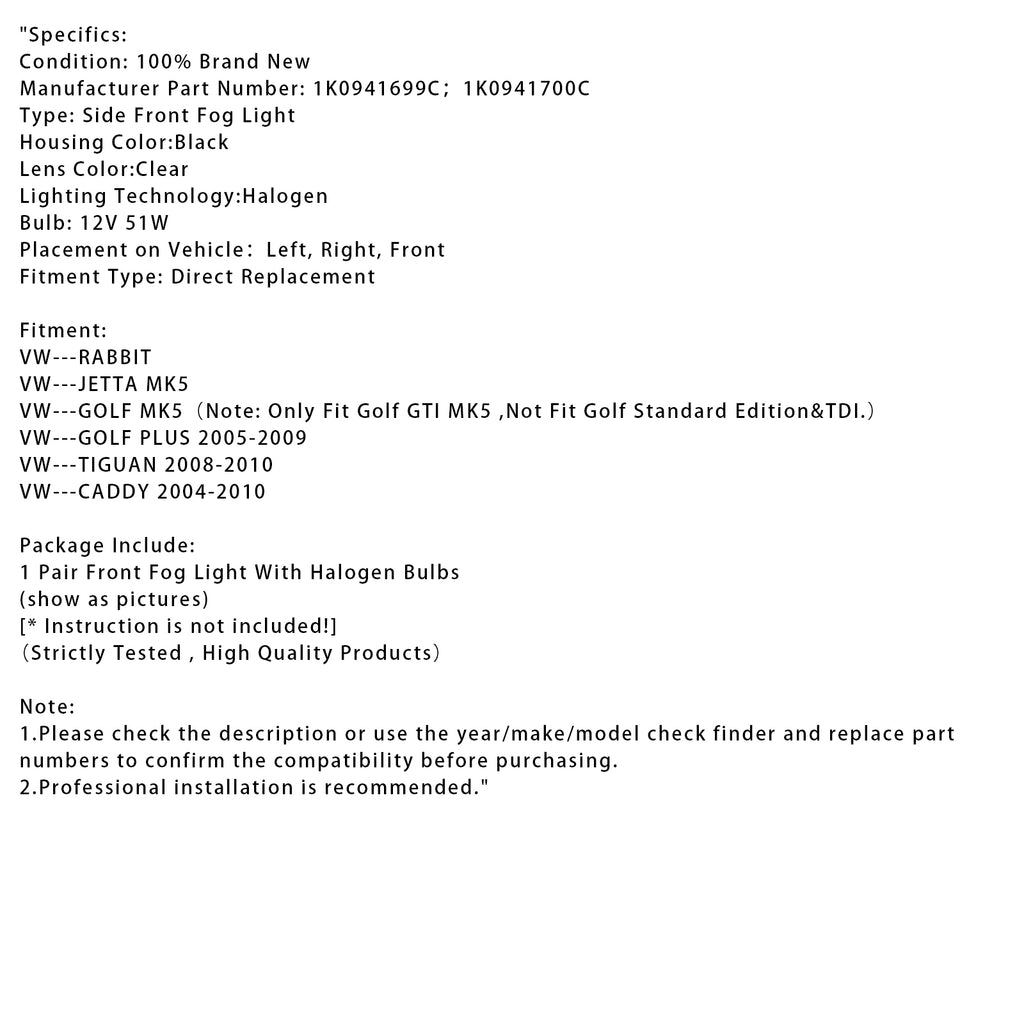Pair Front Fog Light Lamps For Volkswagen GOLF MK5 GTI Version 2004-2009
