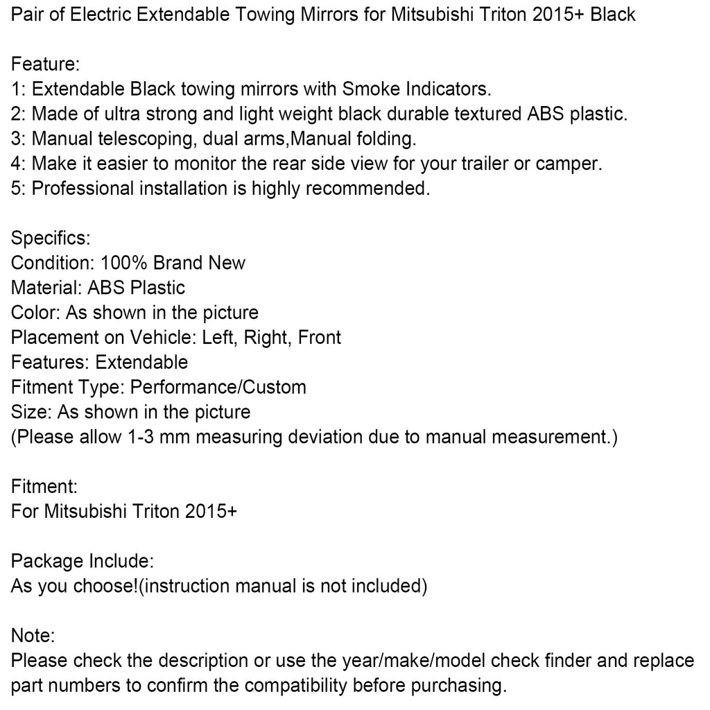 Pair of Electric Extendable Towing Mirrors for Mitsubishi Triton 2015+ Black