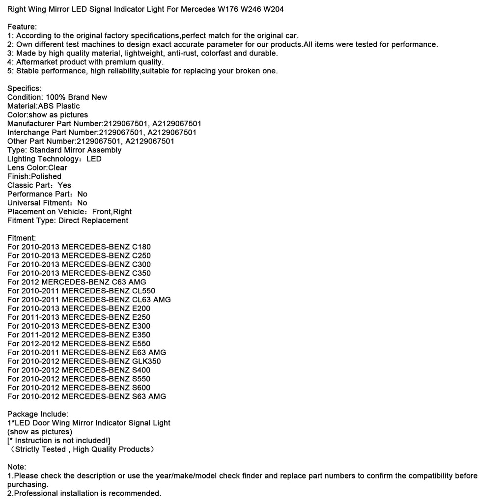 Right Wing Mirror LED Signal Indicator Light For Mercedes W176 W246 W204