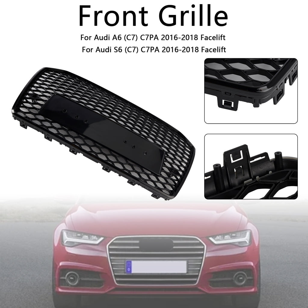 RS6 Style Front Honeycomb Mesh Grille Grill Fit Audi A6 S6 C7 2016-2018 Black