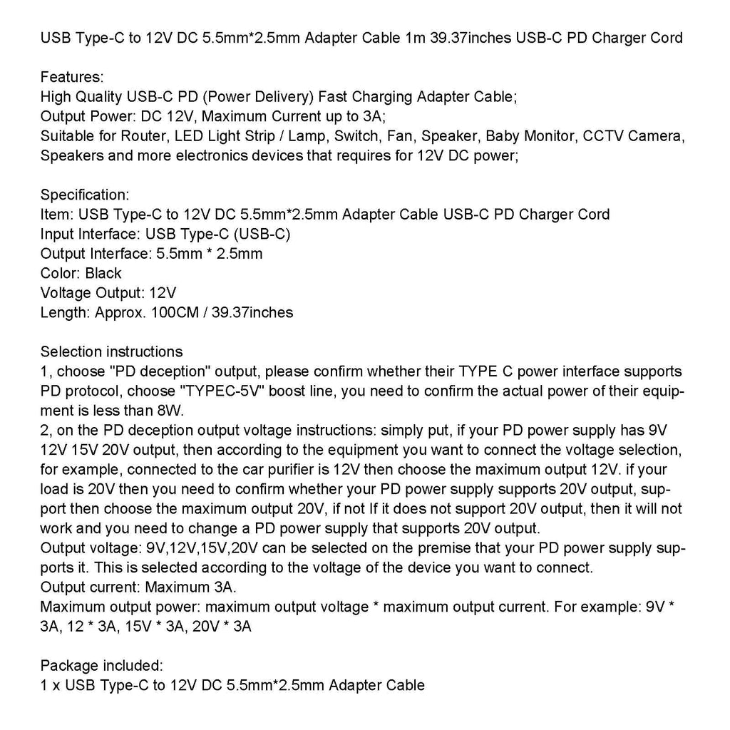 Item: USB Type-C to 9V DC 5.5mm*2.5mm Adapter Cable USB-C PD Charger Cord