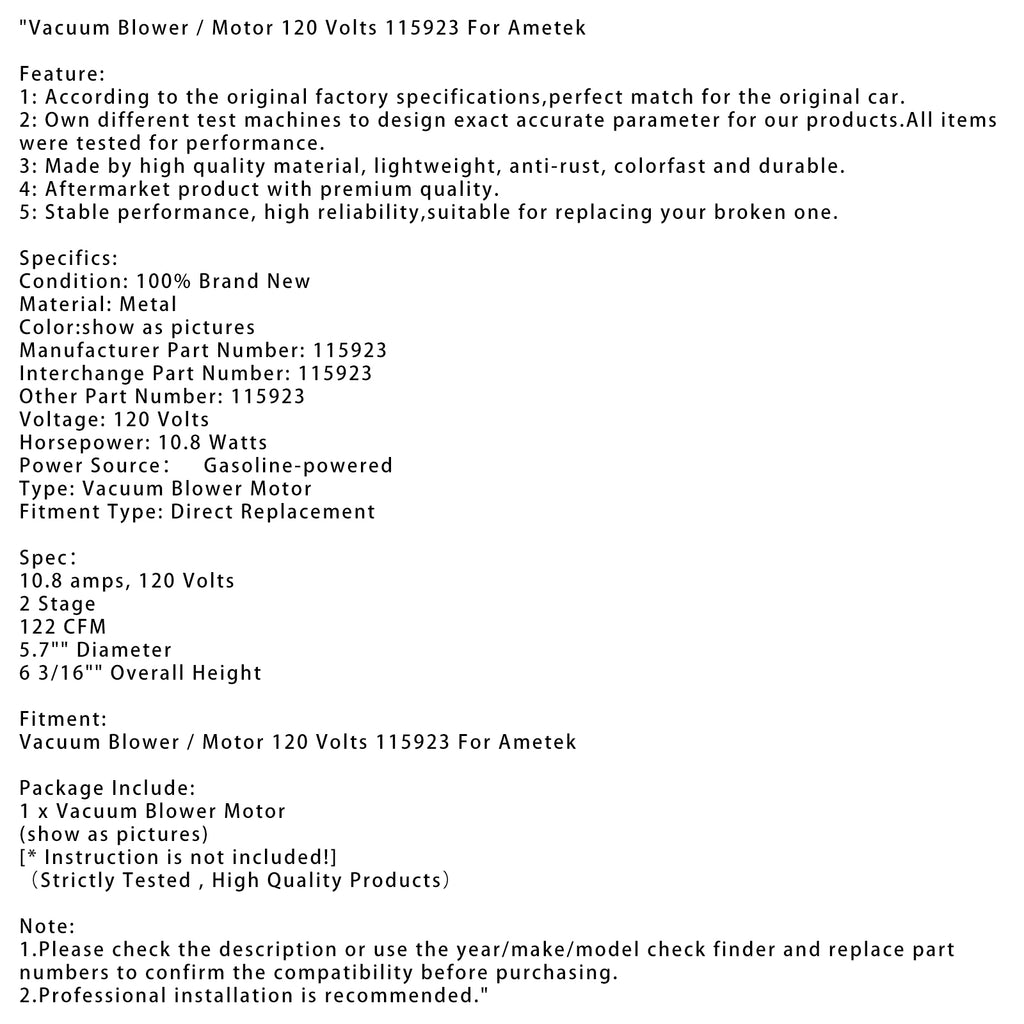 Vacuum Blower / Motor 120 Volts 115923 For Ametek