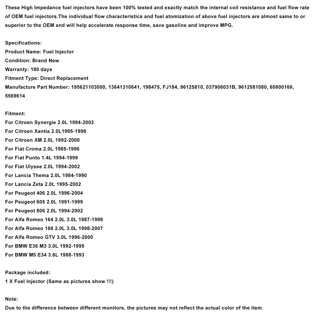 Estos inyectores de combustible de alta impedancia han sido 100% probados y coinciden exactamente con la resistencia de la bobina interna y el caudal de combustible del combustible OEM. injectors.The Las características de flujo individuales y la atomización de combustible de los inyectores de combustible anteriores son casi iguales o superiores a las del OEM y ayudarán a acelerar el tiempo de respuesta, ahorrar gasolina y mejorar el MPG.