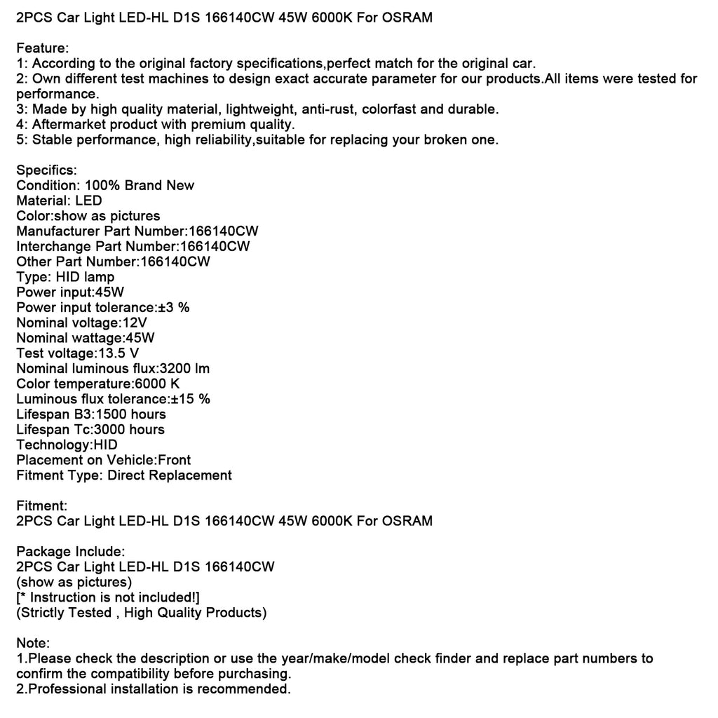 2 luces LED para coche HL D1S 166140CW, 45 W, 6000 K, para OSRAM