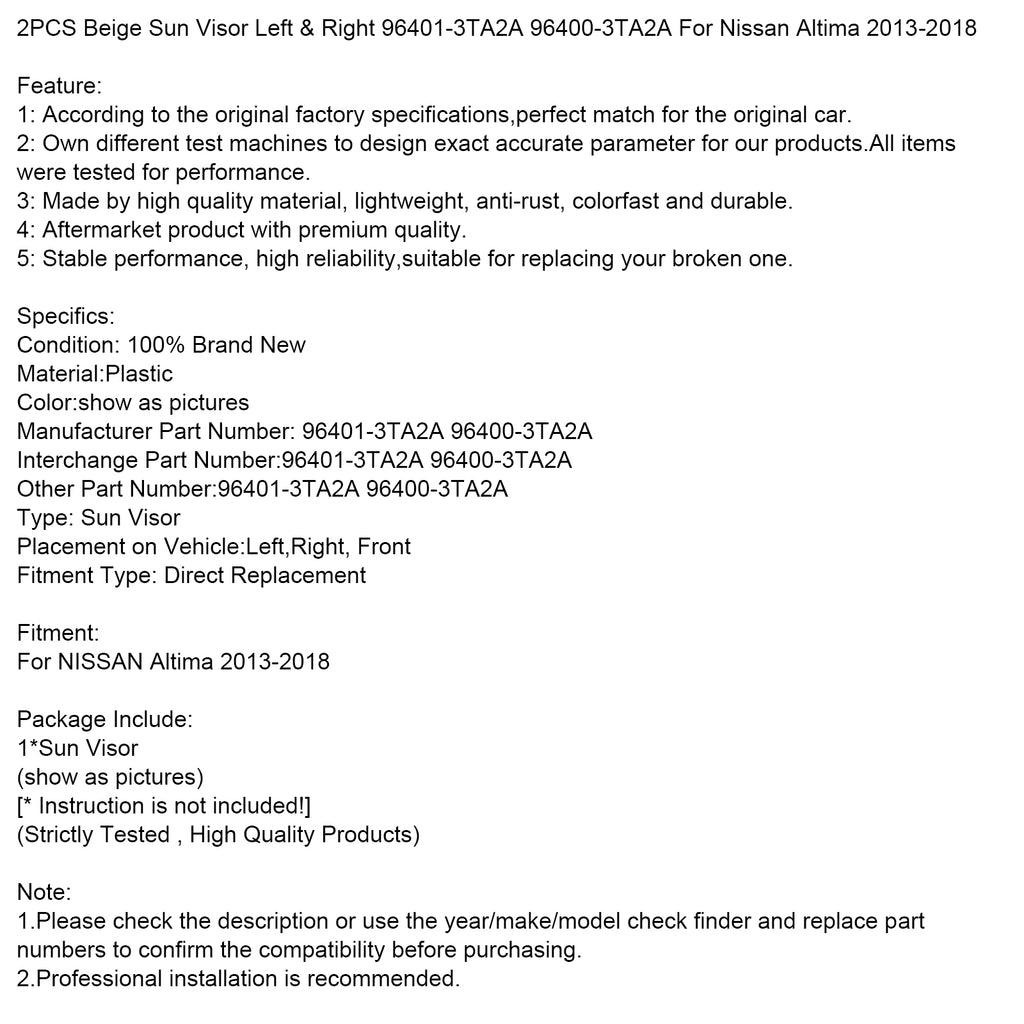 2 piezas de visera solar beige izquierda &Amplificador derecho 96401-3TA2A 96400-3TA2A para Nissan Altima 2013-2018