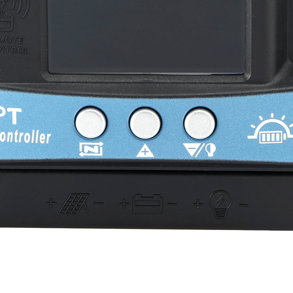 Controlador solar MPPT de 30 A/60 A/100 A, pantalla a color multilingüe, puerto serie, Bluetooth, monitoreo de temperatura, carga de 12 V a 60 V.