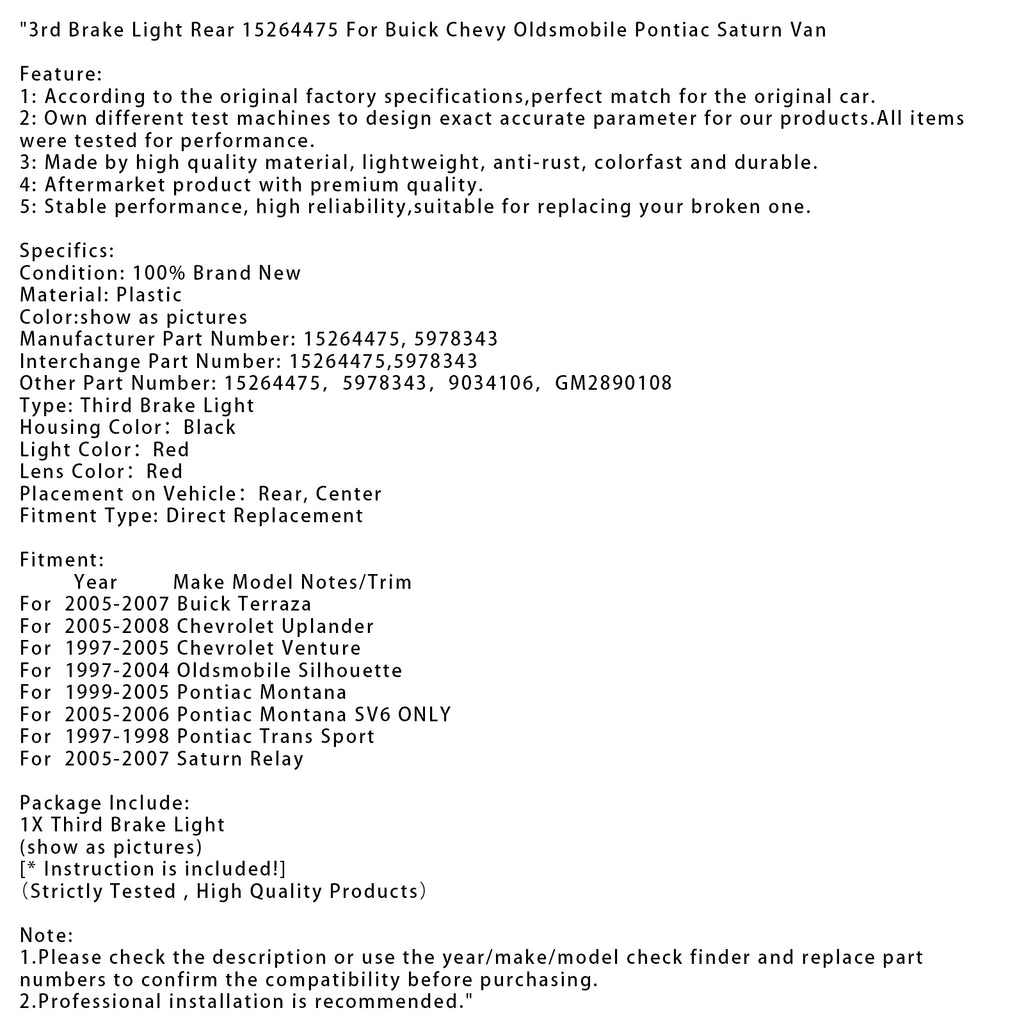 Tercera luz de freno trasera 15264475 para Buick Chevy Oldsmobile Pontiac Saturn Van